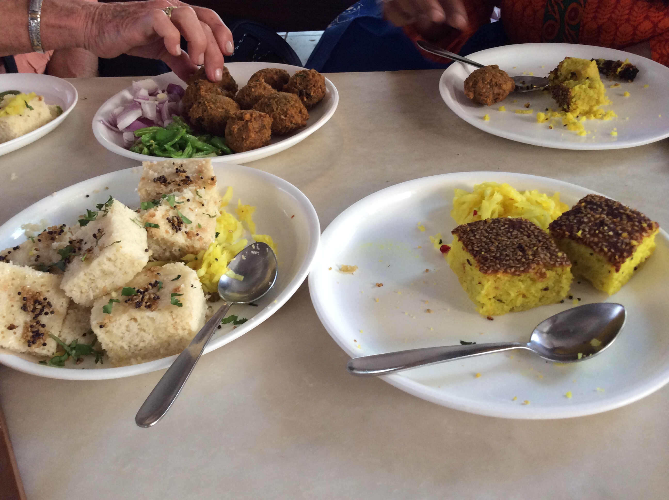 Dinner was fabulous, the Vishalla, a traditional Gujerati meal, low tables, seated on the ground, food served on leaves stitched together, served by waiters dressed in white and white turbans. All outside, low lighting in a garden setting. What a feast. This restaurant had a traditional puppet show going on, drumming, people dancing. What an day!