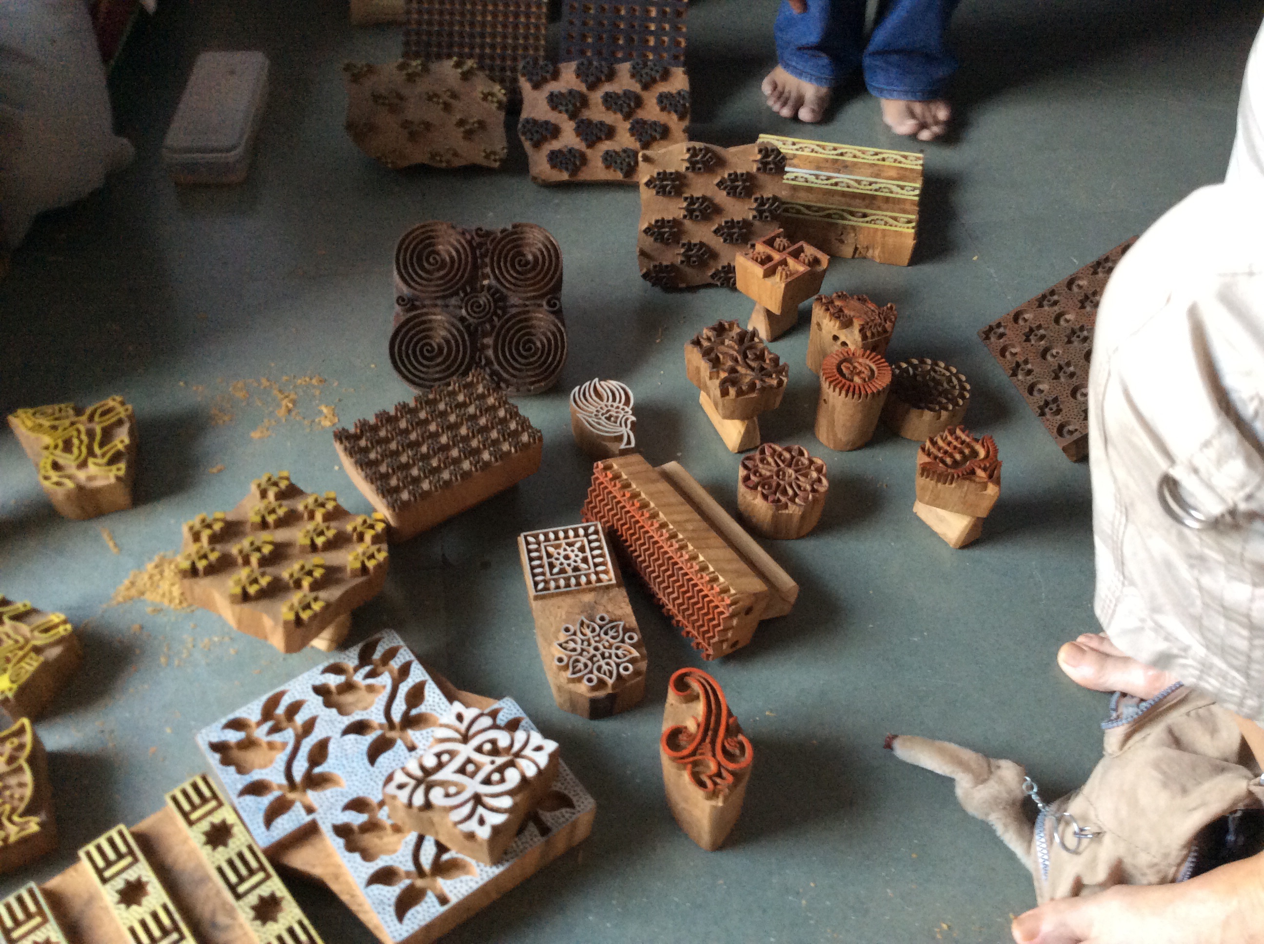 we visited a block carver. This man is one of the best in India. There used to be hundreds of artists who carved the blocks for printing. It is down to twelve now. He learned from his father and is teaching his son. I bought a few blocks to share with my students.