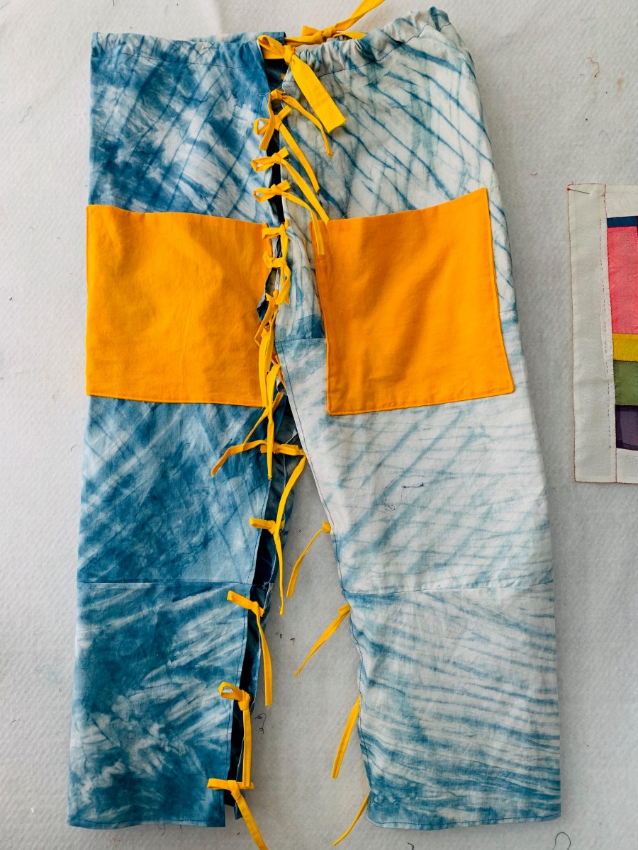 Arashi Shibori Pants Published December 16, 2019 at 3024 × 4032 in Art to Wear/Upcycling “Join” Garments ← Previous Next →